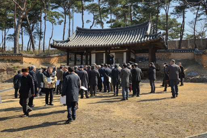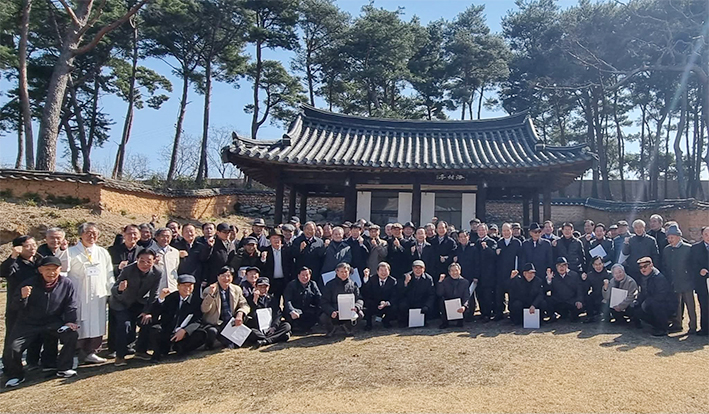 동산재를 둘러 보면서 담소를 나누고 기념 사진을 촬영하는 대종회 종인들
